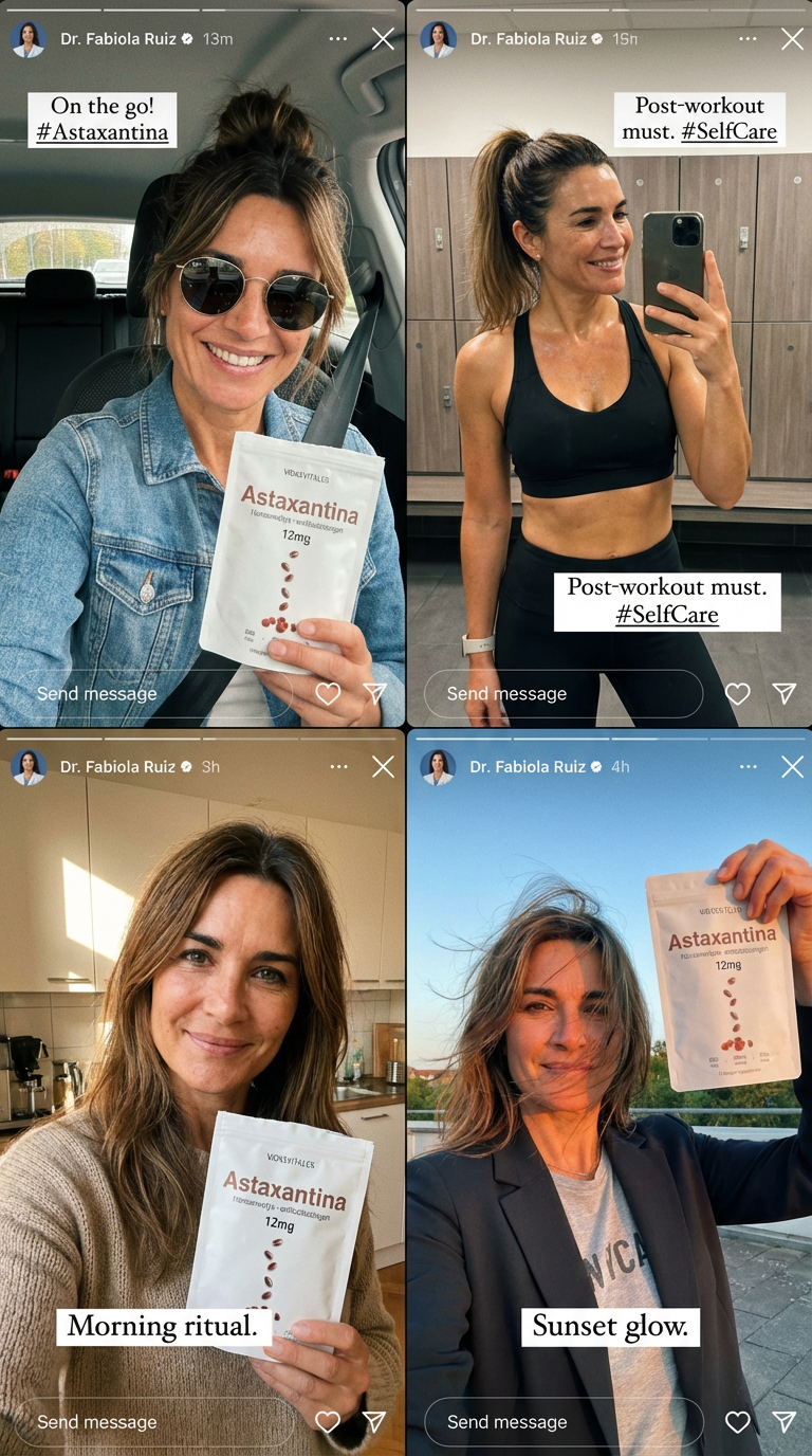 • "I've had melasma for 15 years. I spent thousands on laser treatments and nothing worked. In two months with astaxanthin, the spots lightened by over 70%. My dermatologist was shocked. The best part is that I'm no longer afraid of the sun because my skin is protected from the inside out."